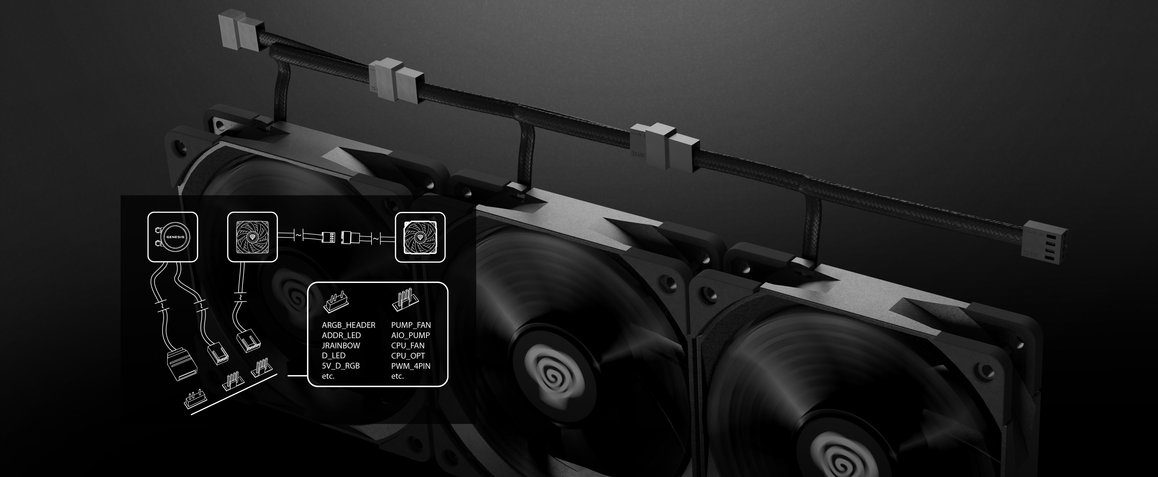 K provozu chlazení jsou zapotřebí pouze tři konektory - čerpadlo, ventilátory a - volitelně - ARGB, takže instalace je snadná, rychlá a bezproblémová.