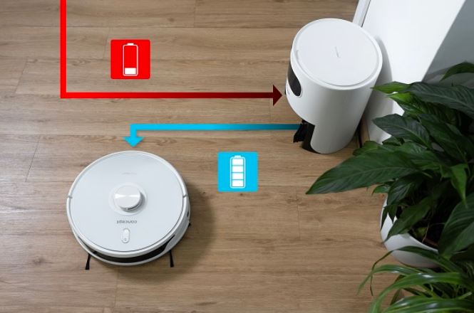 Nabíjecí základna s automatickým vysypáváním prachu pomáhá robotickému vysavači VR3450 k naprosté samostatnosti. Eliminuje potřebu manuálního vyprazdňování prachové nádoby a umožňuje delší bezúdržbový provoz. Robot automaticky vysype prachový zásobník do sáčku, který je umístěný uvnitř stanice. Tento sáček dokáže pojmout 3,5 l nečistot, takže vám vydrží až na dva měsíce běžného úklidu (v závislosti na četnosti uklízení a míry znečištění). Nemusíte se o nic starat. Robot se vyprázdní i s nasazeným mopovacím nástavcem. V okamžiku, kdy je sáček naplněný, rozsvítí se kontrolka na stanici, která vás upozorní na nutnost výměny.