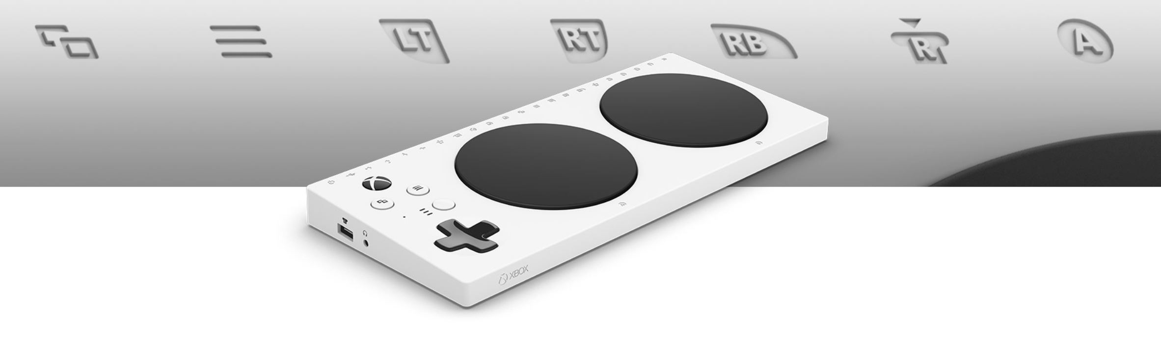 Připojte externí zařízení jako spínače, tlačítka, držáky a joysticky a vytvořte si vlastní zážitky z ovladače, který je jedinečně váš. Tlačítko, posuvné tlačítko a spouště se ovládají pomocí asistenčních zařízení (prodávají se samostatně) propojených pomocí 3,5mm jacků a USB portů.