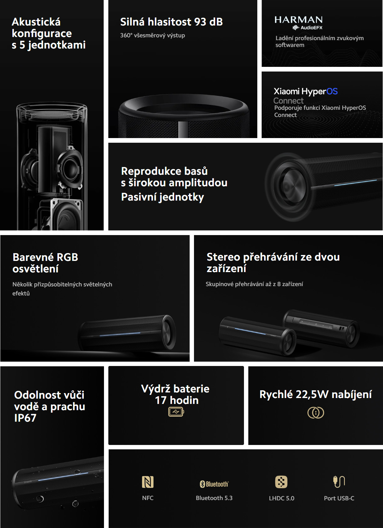 Řada Bluetooth reproduktorů Xiaomi stále prosazuje filozofii „autentického“ zvuku. Kombinace vlastní konstrukce se symetrickou architekturou a převratné technologie počítačového zpracování zvuku poskytuje harmonický a přirozený zážitek z poslechu hudby. Je navržen pro venkovní použití. Je přenosný, může se pochlubit silnou hlasitostí, mocnými basy a systémem Xiaomi HyperOS, což zaručuje vynikající kvalitu zvuku, ať se vydáte kamkoli. Pečlivě zpracovaný Bluetooth reproduktor Xiaomi pro všechny milovníky hudby a života.
