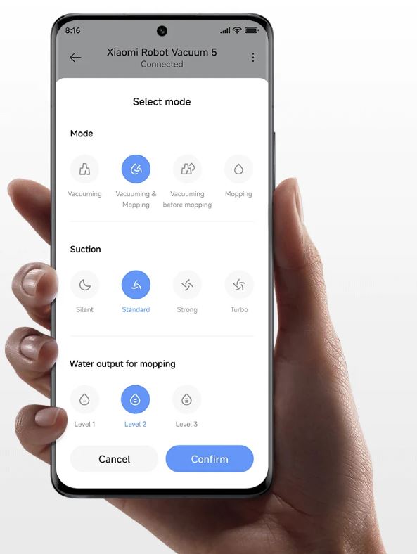 Když jste mimo domov, stačí otevřít aplikaci Xiaomi Home. Podporuje vzdálené spuštění vysávání a vytírání, nastavení zakázaných oblastí nebo přizpůsobené funkce, jako je plánovaný úklid. Uklízejte domácnost přímo z dlaně.