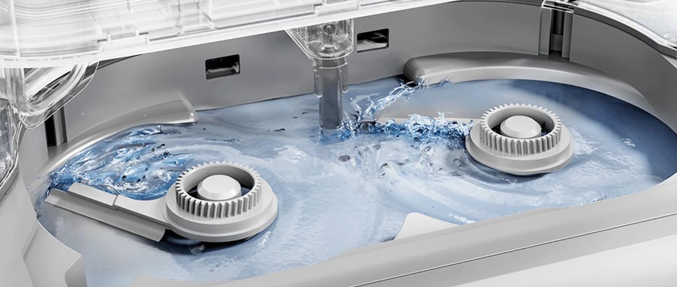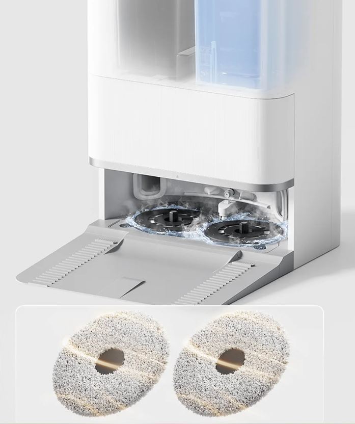 Při mytí horkou vodou při teplotě až 80 °C se z mopovacích podložek rychle uvolňují odolné skvrny. V kombinaci s vysokorychlostním rotačním kartáčováním je zaručeno účinnější čištění mopu. Po vyčištění jsou mopovací podložky suché již za 2 hodiny díky sušení horkým vzduchem, což snižuje nutnost ručního mytí nebo sušení na slunci. Velká nádržka na čistou vodu o objemu 4 l snižuje potřebu častého doplňování, proto je vysavač ideální i pro úklid velkých domácností.