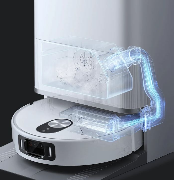 Poté, co robotický vysavač dokončí čištění a vrátí se do dokovací stanice, technologie automatického sběru prachu pomocí silného proudu vzduchu rychle přenese obsah prachové nádoby do prachového sáčku. Díky velkému objemu 2,5 l vyžaduje prachový sáček výměnu až po 75 dnech.