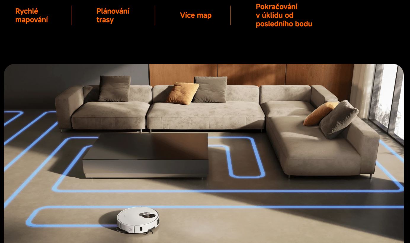 Díky špičkové laserové navigační technologii provede robotický vysavač 360° skenování vašeho domova, aby rychle vytvořil mapu dispozice a přesně naplánoval úklidové trasy pro vysoce účinný úklid celého domu.