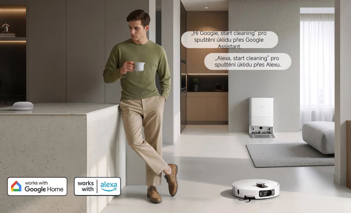 Hlasové ovládání funguje s funkcemi Amazon Alexa nebo Google Assistant.