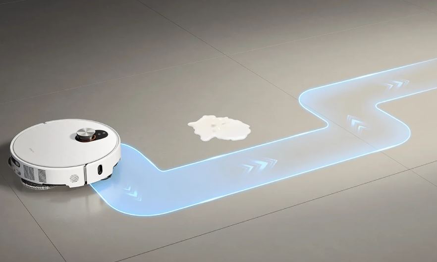 Při detekci směsi pevných a tekutých látek robotický vysavač danou oblast obejde a označí její polohu na mapě.