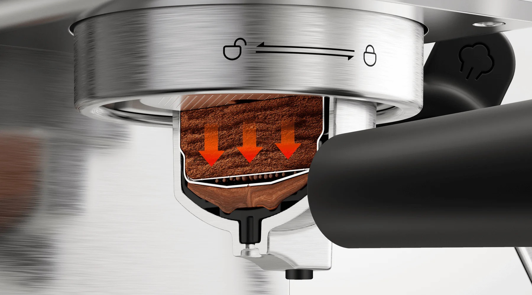 Šetrný tlak při předspaření rovnoměrně navlhčí kávový puk, plně vytáhne bohatou vůni a zabrání tvoření kanálků, čímž se dosáhne hlubší, vrstevnaté chuti.