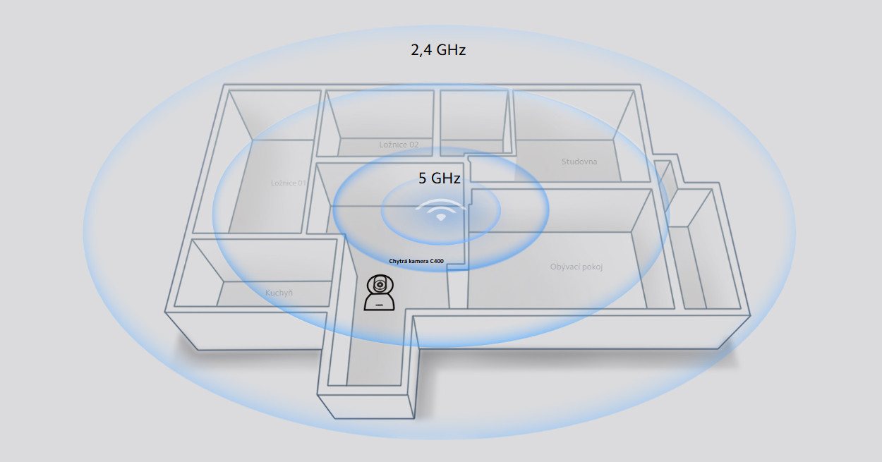 Podpora dvoupásmového připojení Wi-Fi 2,4 GHz/5 GHz pro snížení rušení signálu a stabilnější připojení při zajištění rychlejšího síťového přenosu.