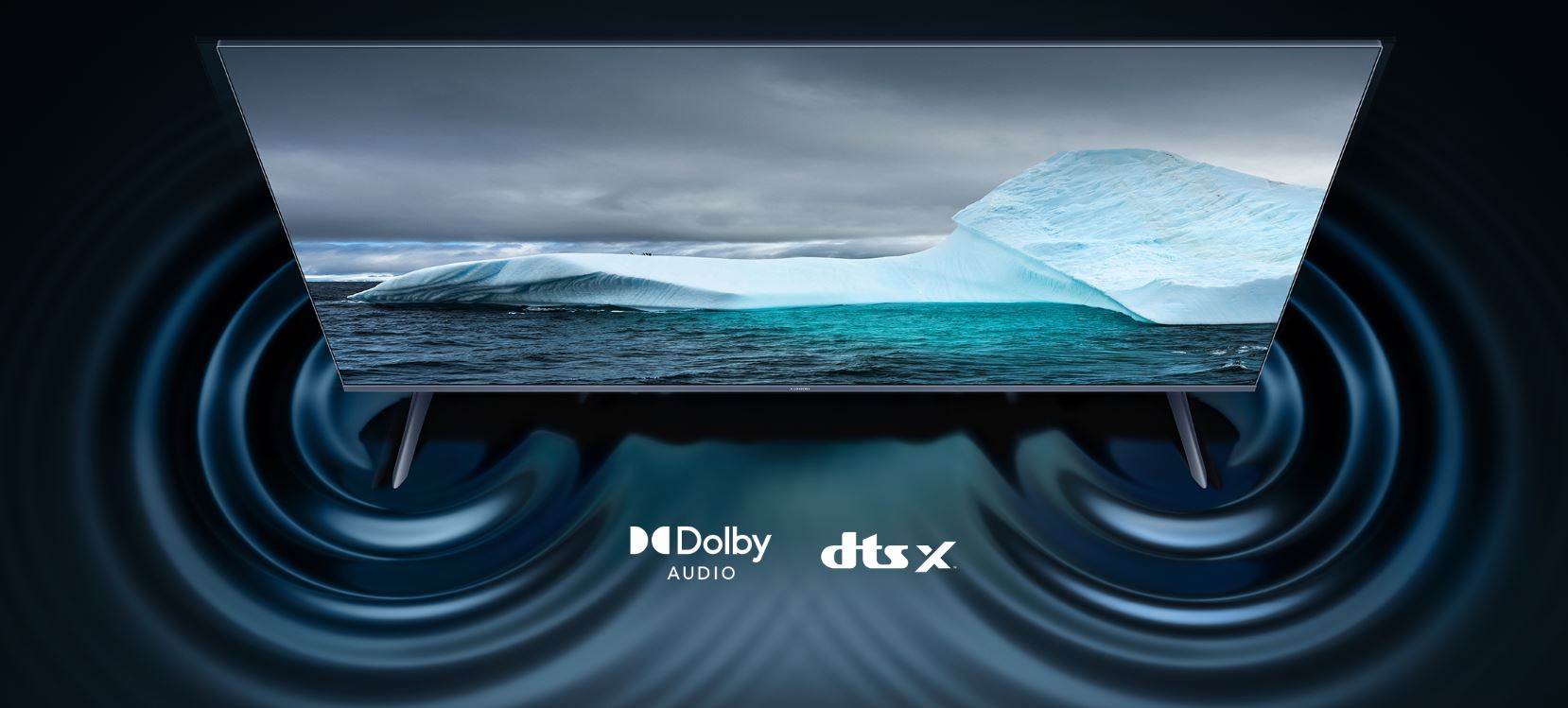 Dva výkonné reproduktory s bohatými výškami a hlubokými basy přinášejí filmový zážitek přímo k vám domů. Dynamický a křišťálově čistý zvuk je certifikován technologiemi Dolby Audio a DTS:X.