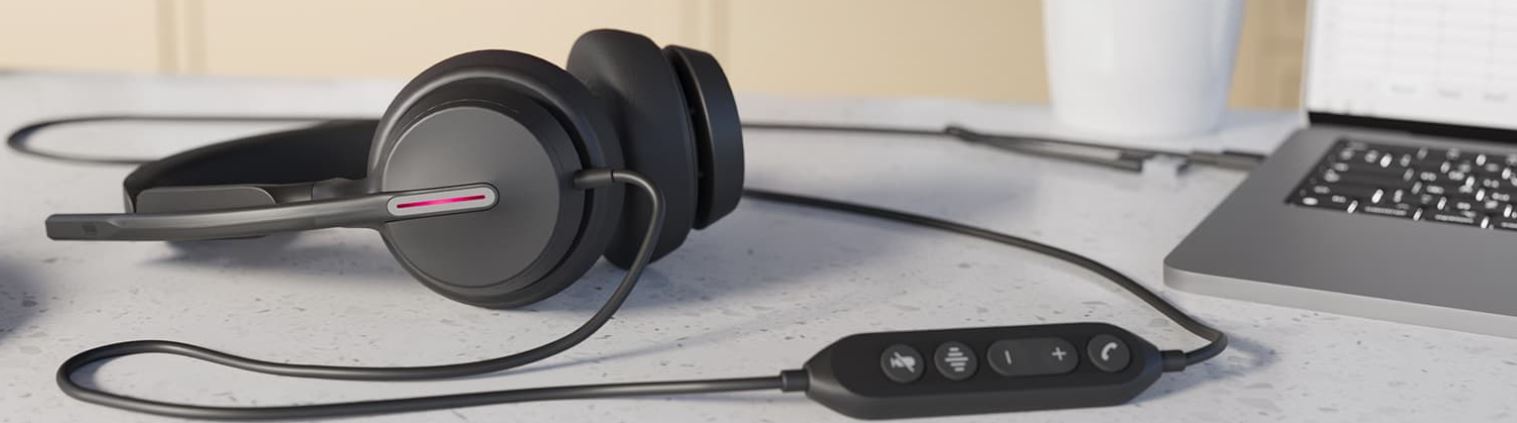 Pro flexibilní připojení k vašim zařízením stačí použít kabel USB-C s adaptérem USB-A. Integrované ovládací prvky pro snadné řízení hovorů, hlasitosti a ztlumení v kombinaci s odolným kabelem zajišťují plynulou komunikaci.