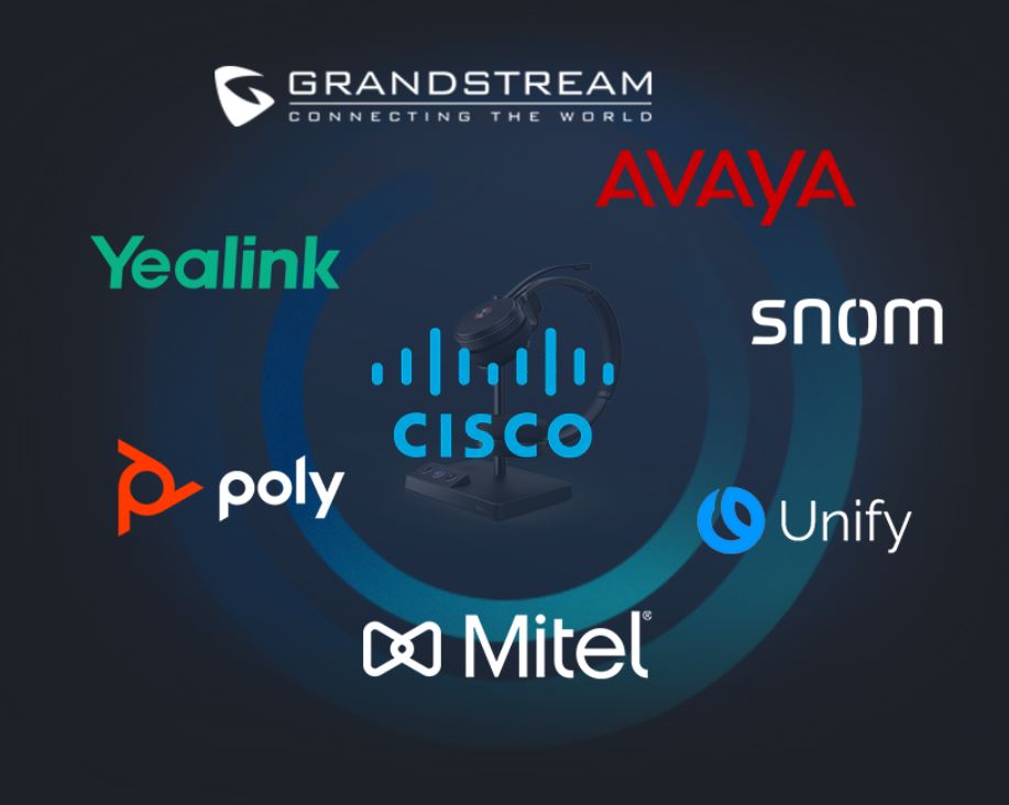 Sada Yealink WH62/63 a EHS60/EHS61 je plně kompatibilní s telefony od jiných výrobců, jako jsou Cisco, Avaya, Poly, Mitel, Unify, Grandstream a Fanvil. Funkce jako přijetí/odmítnutí hovoru nebo nastavení hlasitosti jsou podporovány v režimu hands-free, což zvyšuje každodenní produktivitu.